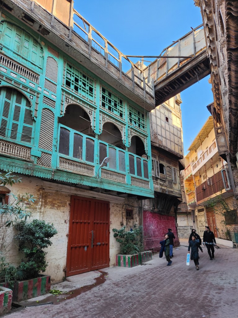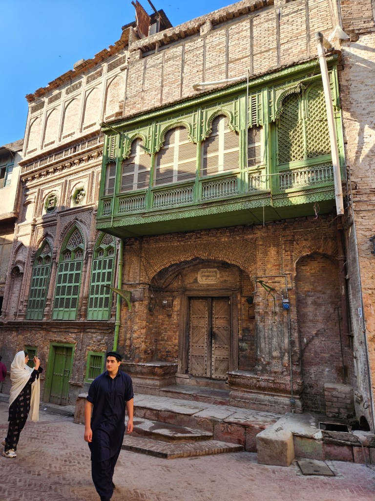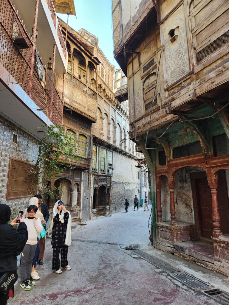 3. We walked to the “Sethi House”. The Sethi House, located in the heart of Peshawar’s Old City, is an architectural and historical gem that reflects the rich cultural heritage of the region. . The Sethi House, also known as the Sethi Mohallah, was built in 1884 by the Sethi family, a prominent and wealthy business dynasty in Peshawar. The family was involved in trade along the Silk Road, conducting business with regions like Central Asia, Afghanistan, India, and beyond.
